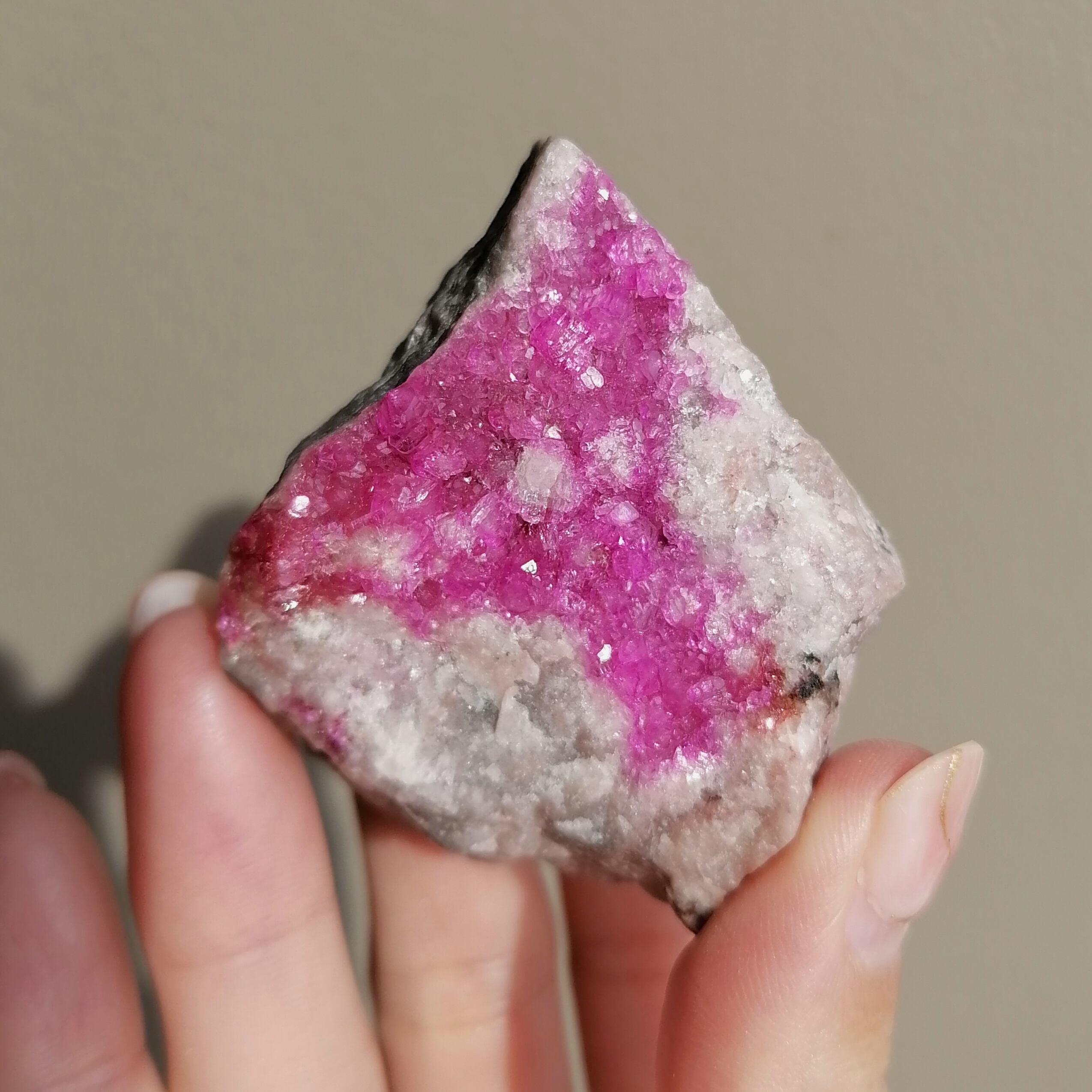 カルサイトの中でも、自然のコバルトを含有したビビットピンクが目を引く石。