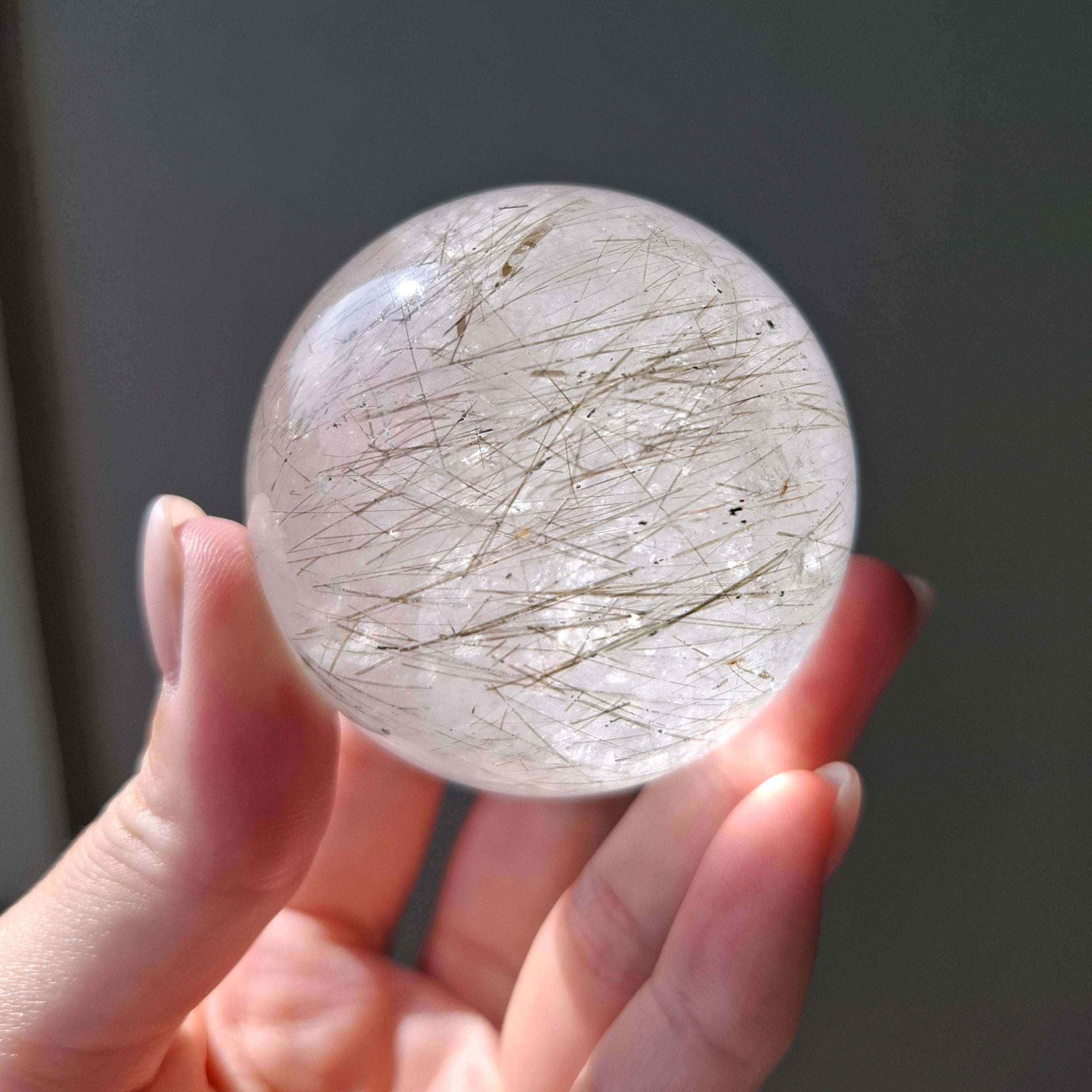 アクチノライトインクォーツ スフィア ブラジル産 5.2cm