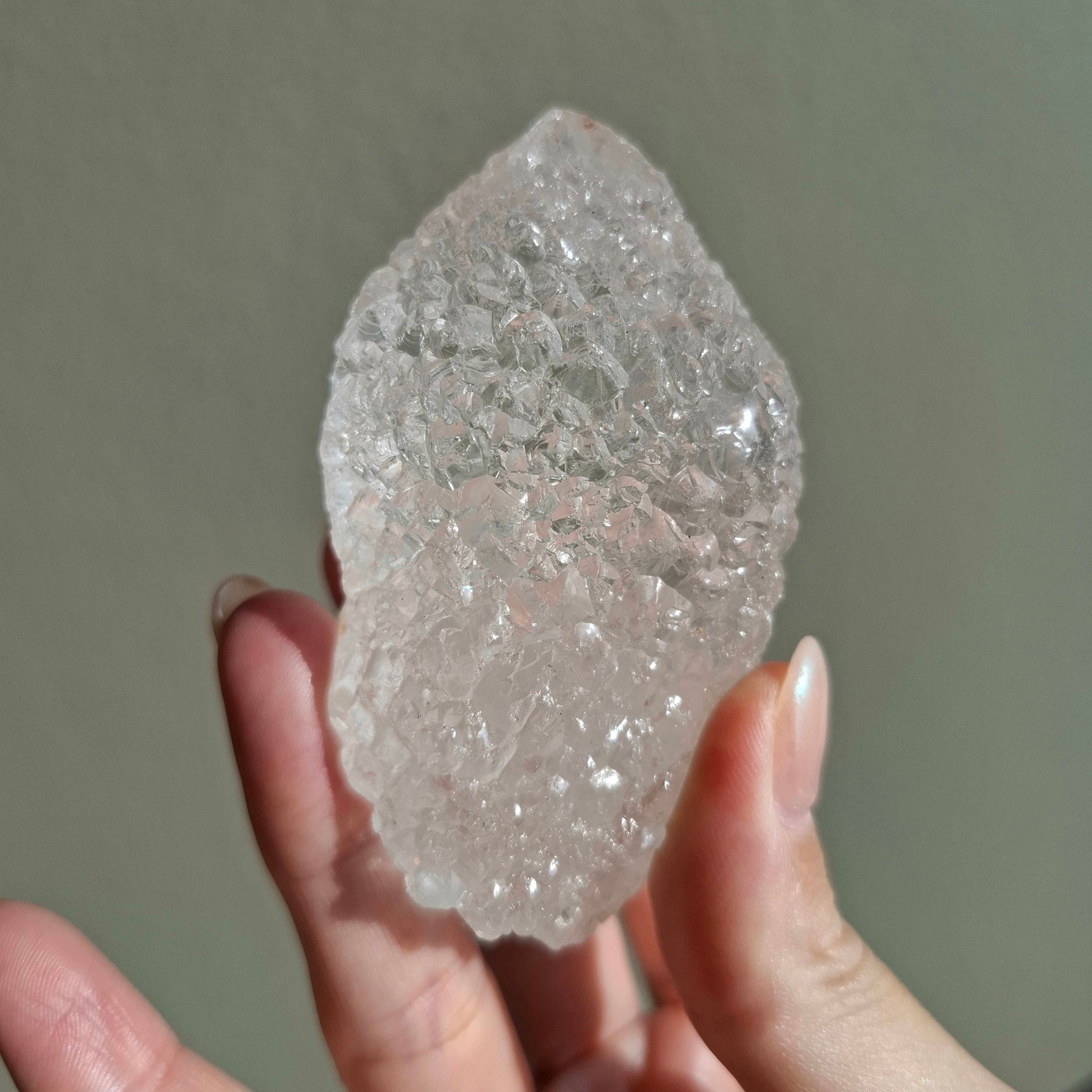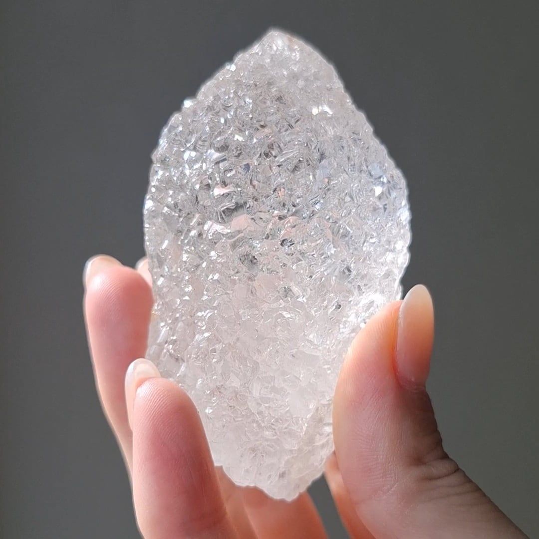 ヒマラヤの標高6000mという、人が簡単には入れない氷河地帯で採掘される希少なクリスタル。成長の過程で溶解と再結晶を繰り返すことで凸凹した形状が生まれます。アイスクリスタルとも呼ばれています。