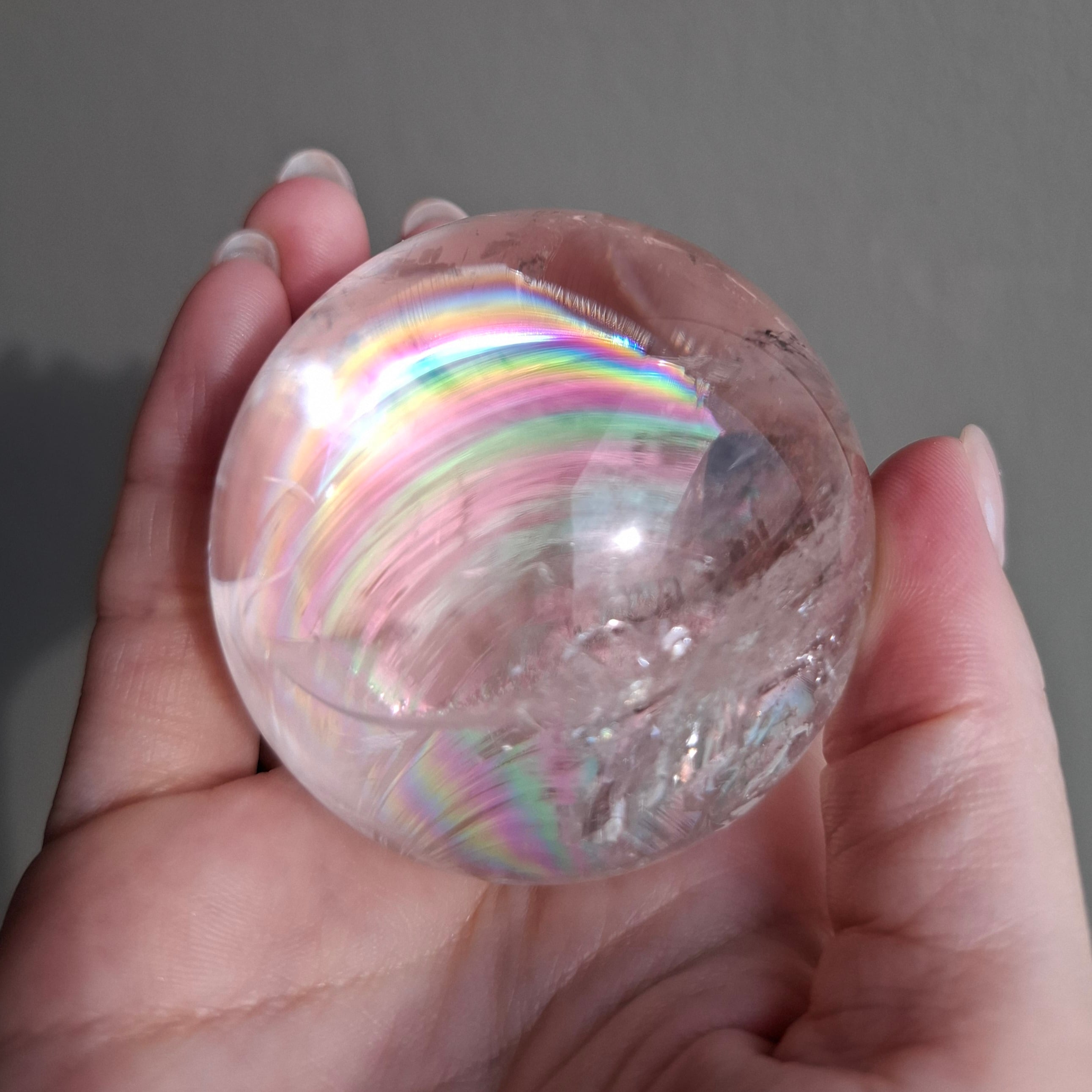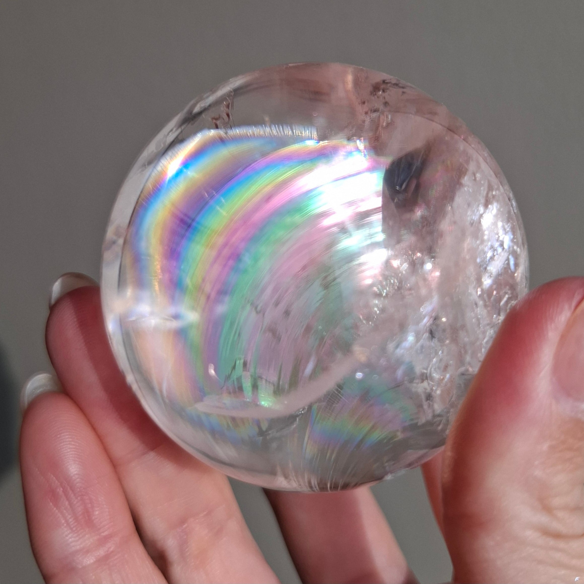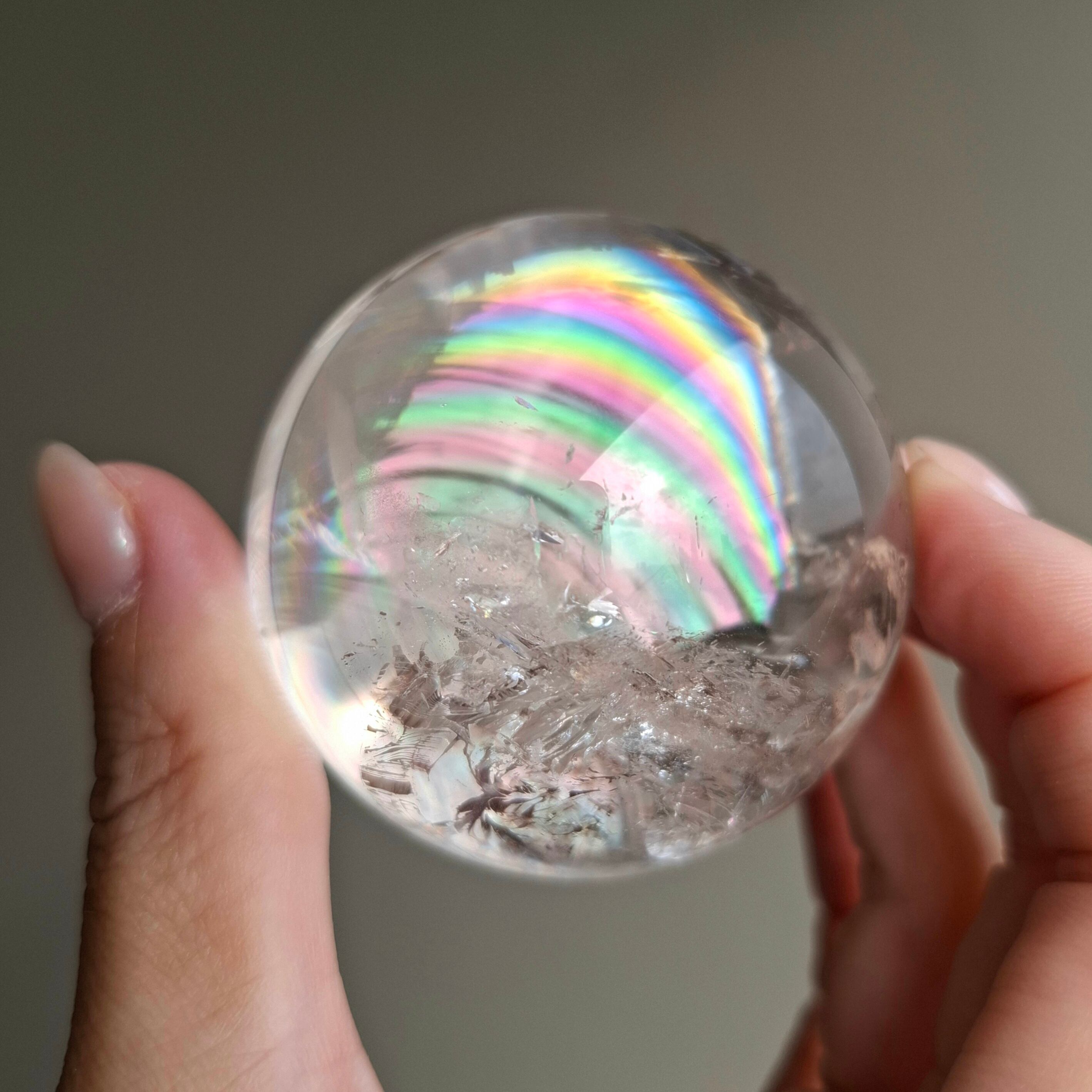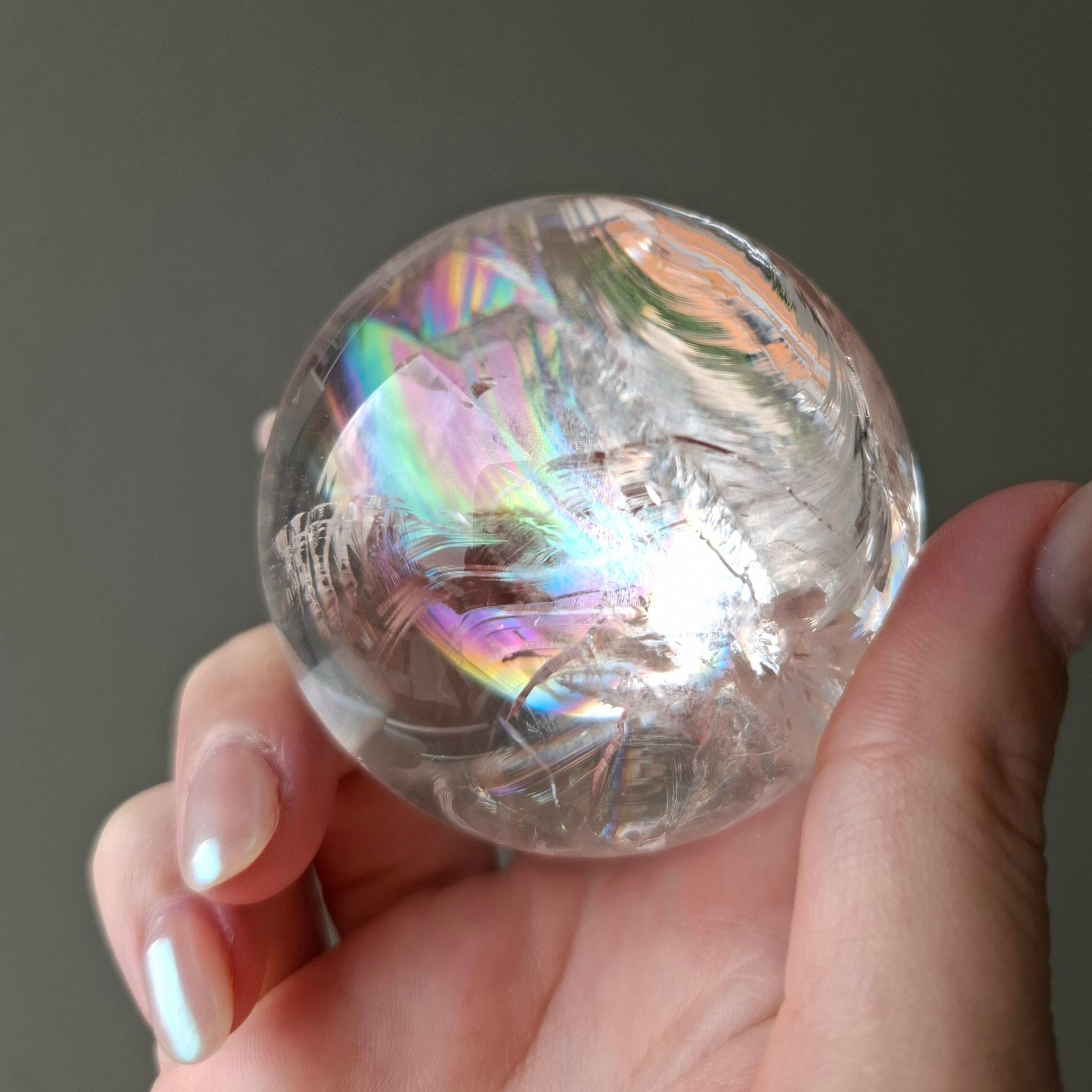 透明な水晶の内部に虹色の光が見えるのが特徴の天然石。